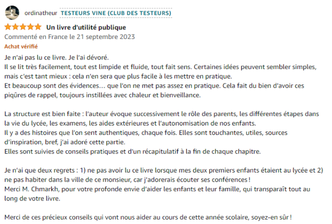 Et vous, où en êtes-vous par rapport au parcours de votre enfant au lycée ? Voudriez-vous lui offrir votre meilleur accompagnement pendant ces années décisives que sont la seconde, la première et la terminale ? Rêvez-vous de voir votre enfant plus confiant(e), plus autonome, prêt(e) à fournir les efforts nécessaires pour réussir et prenant plaisir dans ce qu’il/elle fait ? Tenez-vous, en tant que parent, à lui laisser les meilleurs souvenirs possible de son passage au lycée?